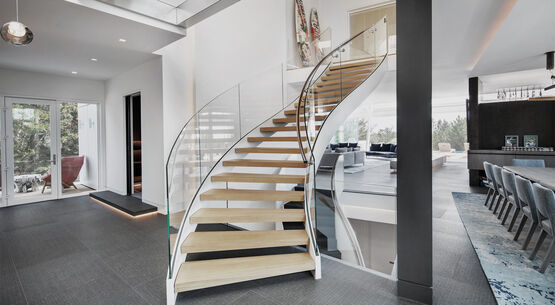 Fabriquée sur mesure, TransParancy™ s’adapte aux escaliers droits ou courbes, aux paliers et aux balcons, avec de multiples options de verre et finitions. -