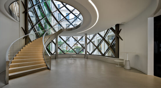 La transparence totale du verre structurel crée une impression de légèreté et met en valeur l’architecture et les matériaux environnants. -