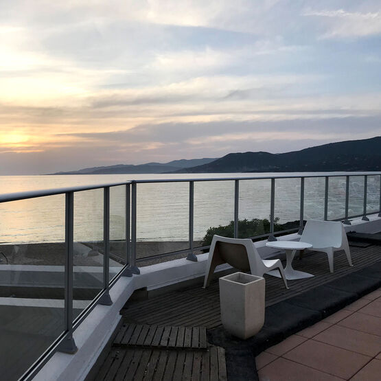 Réalisé conformément aux normes NF - NF P 01-012, NF P 01-013 et NF P 06-111-2/A1, ce garde-corps vitré axé témoigne d’une grande longévité et une qualité optimale grâce à son laquage certifié Qualimarine et classe 2. La pose du garde-corps KONTOUR peut être effectuée sur dalle, nez de dalle ou en tableau.