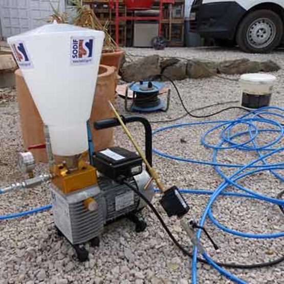 | Mise en oeuvre : | forage de 8 trous/m et injection du gel à basse pression. |