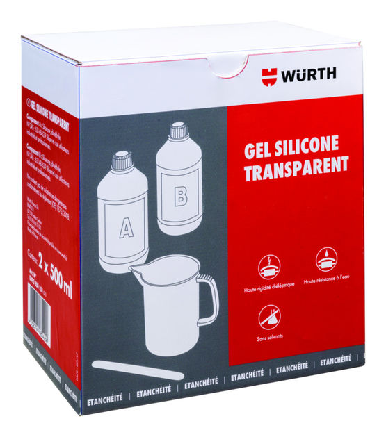 Le gel de silicone a une rigidité diélectrique de 25.5 kV/mm et un temps de polymérisation de 12 min.