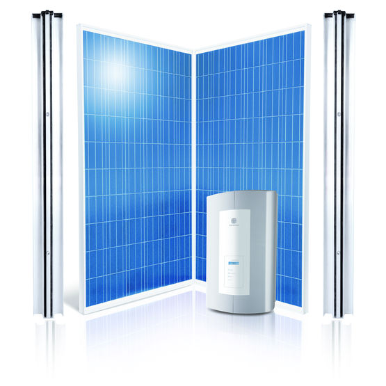 | Caractéristiques techniques : | Dimensions capteurs (l x h x ép) : 123,1 x 55,6 x 4,5 cm (TE 850) et 123,8 x 108,6 x 4,5 cm (TE 1 500).Surface de captage : 9,4 à 39,3 m² selon puissance souhaitée.Batteries de secours : 7,25 à 21,7 kWh (puissance de sécurisation des batteries de 1,5 à 3 kWh).Supports de capteurs pour toitures en pente (pose intégrée ou à plat), sur toiture-terrasses ou en façade (brise-soleil).Interconnexions électriques du fabricant Tyco, onduleurs de connexion réseau type SP-400/ 450/ 600 et compteur électrique de raccordement.Centrale de visualisation et contrôle de la production et consommation sur site (écran Visi'Sol ou ordinateur) ou via internet (logiciel PV-Ingrid). |