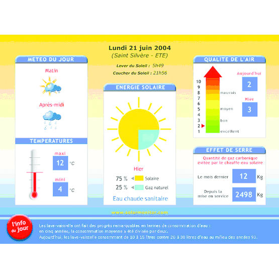 - Affichage sur l'interface web des consommations, production journalière, et CO2 évité.
