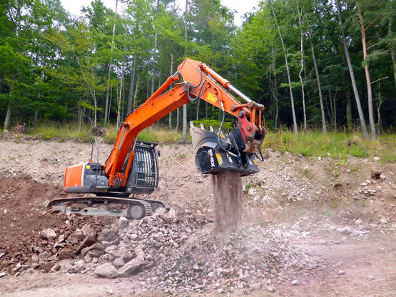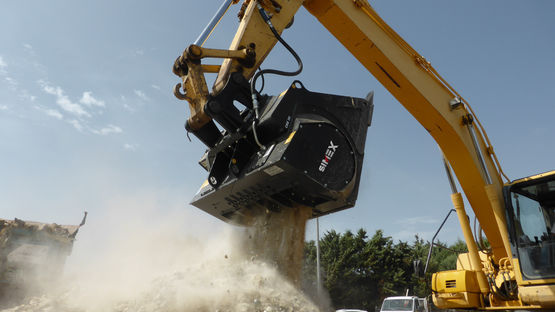 L’équipement idéal pour le broyage de béton armé et de déchets de démolition : la très grande force à la dent permet de broyer n’importe quel type de matériau, grâce au rotor actionné par des moteurs hydrauliques à pistons radiaux de grande cylindrée en prise directe. Système automatique d’inversion du sens de rotation du tambour en cas de blocage (brevet Simex).