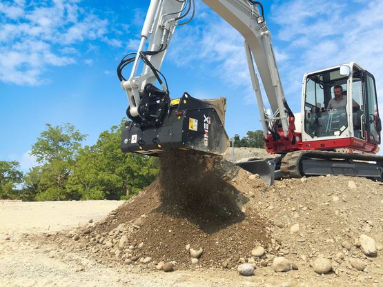 Le brevet exclusif Simex permet de varier la granulométrie du matériau à cribler en quelques secondes seulement par une simple commande depuis la cabine.