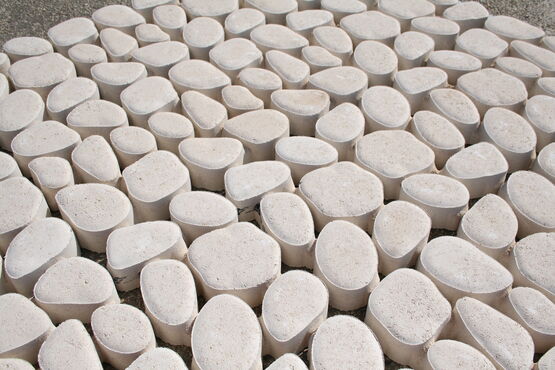 | Mise en oeuvre : | pose bord à bord ; sous-couche de 15 à 20 cm d'épaisseur, en pierraille fine (grain variable 3-10 mm) ; remplissage à ras des cellules de la grille avec lapilli volcanique (grain variable 0-4 mm). |