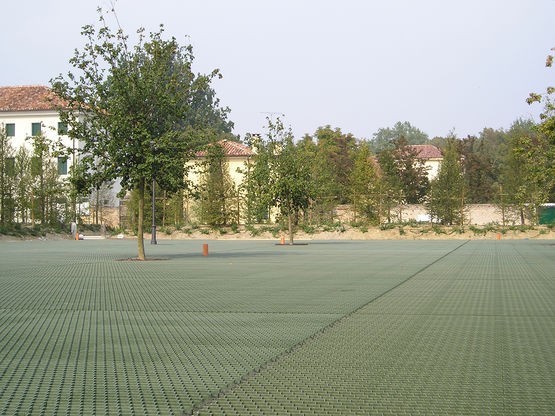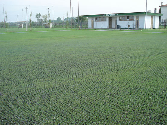E.C.O. di PRATOPRATICO® a une structure particulière qui protège le gazon, quelle que soit les conditions atmosphériques, des sollicitations produites par le passage et le stationnement des voitures et favorise en même temps la pousse et l’enracinement naturel du gazon.