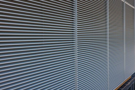 La conception unique des lames en aluminium extrudé d'aspect brut, anodisé ou laqué assure un flux d'air de classe 2 et une classe anti-pluie A.