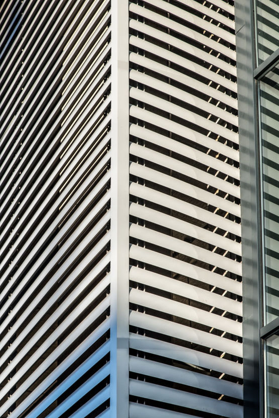 Souvent utilisées sur la partie supérieure des bâtiments pour dissimuler les systèmes de CVC, les grilles d'occultation permettent de cacher les équipements inesthétiques tout en laissant filtrer le flux d’air nécessaire au fonctionnement des machines.