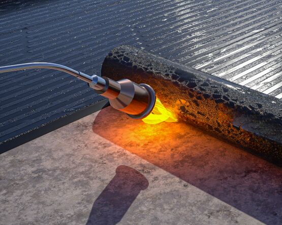 - Pose de l’isolant sans apport de colle (il se pose sur les bandes adhésives, prélablement réchauffées, à la surface du pare-vapeur)