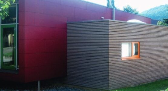 Ce système d'isolation thermique par l'extérieur est composé d'un panneau isolant rigide en laine de roche non revêtu (Rockfaçade) et d'un revêtement de façade (Rockpanel). Le revêtement extérieur de façade en laine de roche comprimée à haute pression est proposé en deux épaisseurs et deux masses volumiques.