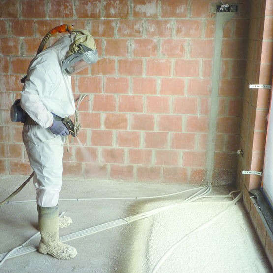 | Mise en oeuvre : | par projection sur 3 à 12 cm d'épaisseur ; sec au toucher en 5 min ; recouvrable par chape ou dalle béton en 24 h. |