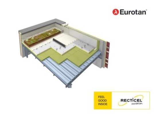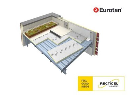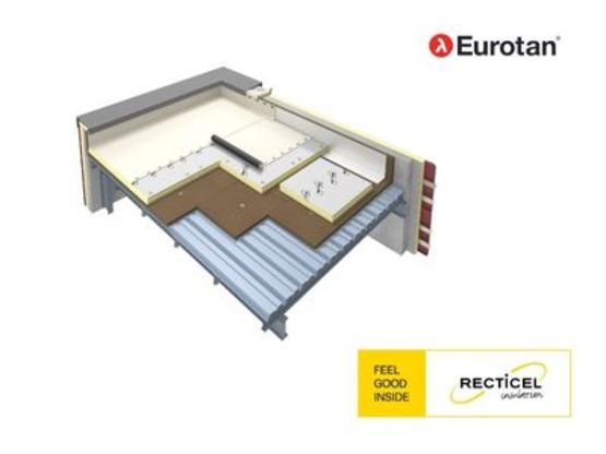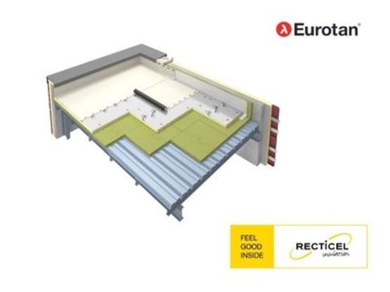 Eurotan est un panneau d'isolation léger, performant et résistant à la compression. Sa mise en œuvre sera réalisée en pose directe sur la tôle d’acier nervurée ou avec l’interposition d’un écran thermique selon la destination du bâtiment.
