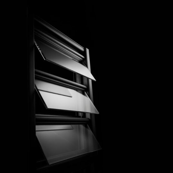 Personnalisables, ces jalousies aluminium sont proposées dans toutes les teintes RAL avec une finition thermolaquée et dans des dimensions maximales de 2015 mm en hauteur et 1500 mm en largeur. L’ensemble est proposé sur des dormants latéraux de 70 mm d’épaisseur.