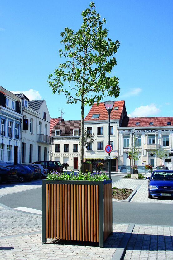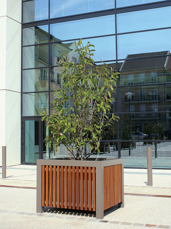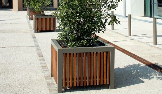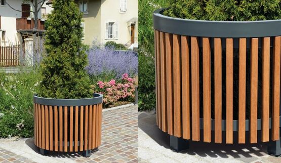 Jardinière en bois et acier, carrée ou ronde | Cinéo
