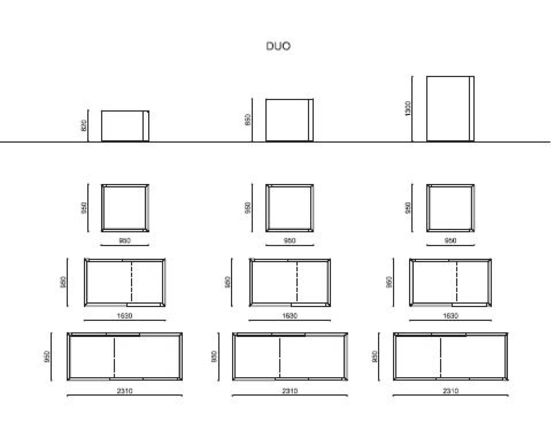 Le modèle DUO dévoile un volume graphique, simple et épuré, sans soudure avec pieds réglables.