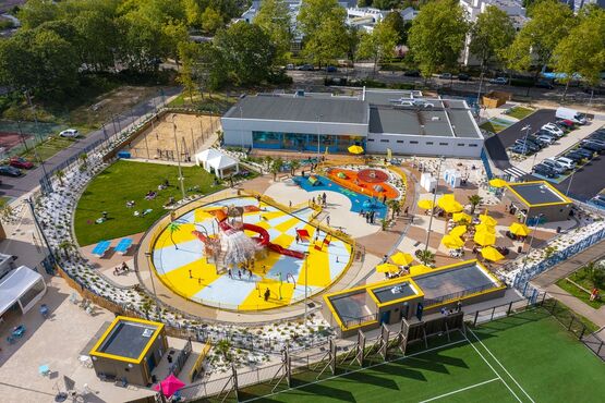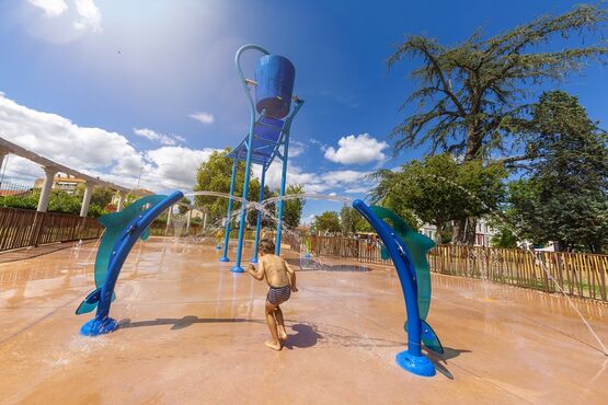 L’aire de jeux d’eau se compose de différents modules rafraichissants et ludiques, qui sont inclusifs et intergénérationnels : des zones par tranches d’âges peuvent être créées. Une zone pour les plus petits stimule le jeu avec des jets adoucis et des interactions sensorielles, tandis que d’autres zones proposent des éléments plus dynamiques qui encouragent le mouvement, l’interaction et l’aventure (destinés aux plus grands). Chaque zone interagit avec la suivante, ce qui favorise des échanges constants entre les différents groupes d’âges.