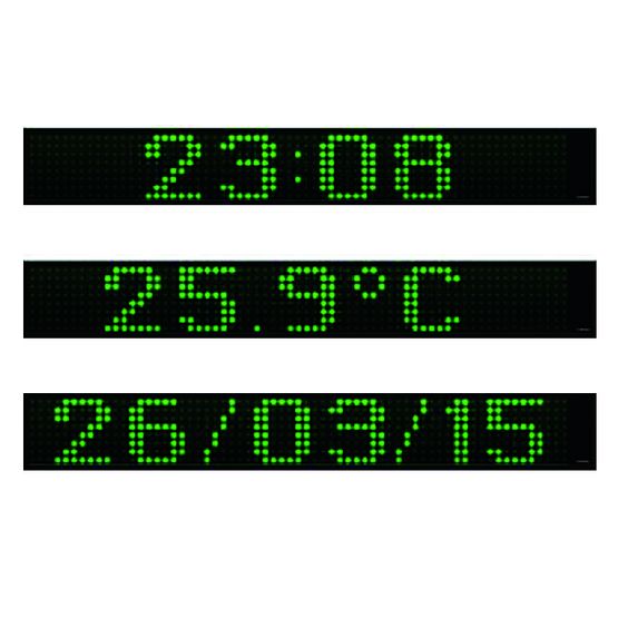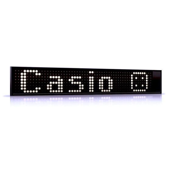| Caractéristiques techniques : | Résolution (Nombre de pixel): 70 cm x25 cm : 22 x 8 nombre de caractères simultanés: 3-4 100 cm x25 cm : 33 x 8 nombre de caractères simultanés: 4-6 130 cm x25 cm : 44 x 8 nombre de caractères simultanés: 6-8 160 cm x25 cm : 55 x 8 nombre de caractères simultanés: 8-11 190 cm x25 cm : 66 x 8 nombre de caractères simultanés: 11-13 220 cm x25 cm : 77 x 8 nombre de caractères simultanés: 13-15 250 cm x25 cm : 88 x 8 nombre de caractères simultanés: 15-17 280 cm x25 cm : 99 x 8 nombre de caractères simultanés: 17-19 |