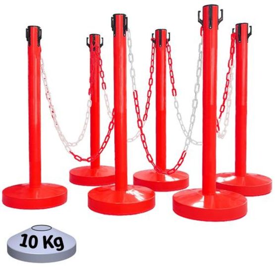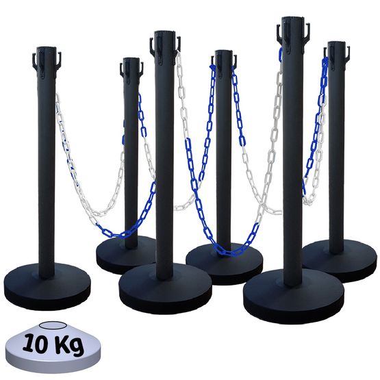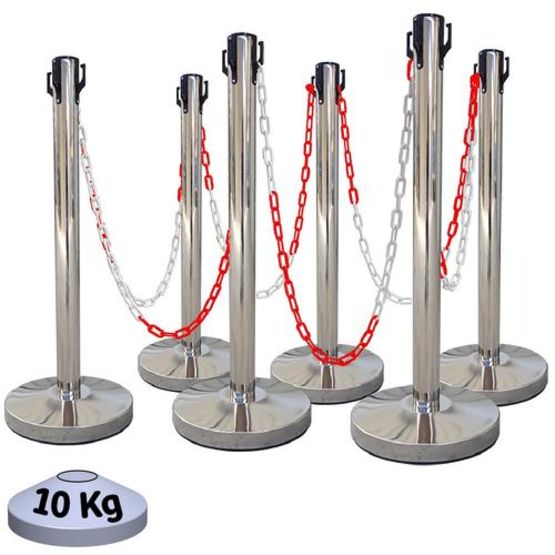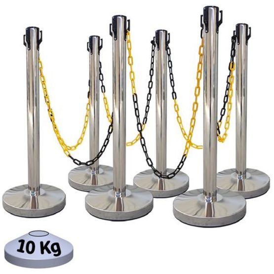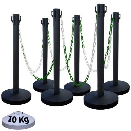 Kit de 6 poteaux de balisage EVOLYS métal avec chaîne plastique ou métal | Réf PM6