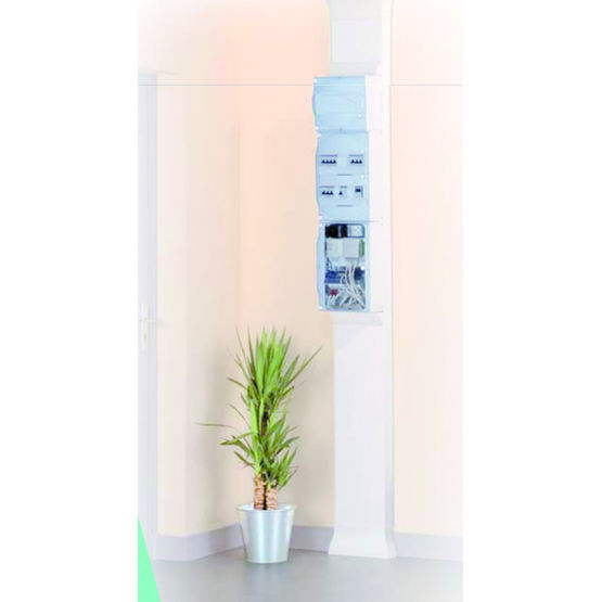 Gaine technique de logement pour locaux d’habitation individuels ou collectifs, regroupant toutes les arrivées des réseaux de puissance et de communication en un emplacement. Composée d’un corps de goulotte en PVC blanc de 2,6 mètres de hauteur, d’un couvercle et d’une cloison de séparation, d’un lot de trois agrafes et deux supports de coffrets. Complétée par les jonctions sol/plafond et coffret/goulotte. Montage des éléments entre eux par clipsage. Dimensionnée pour tableaux 13 modules. Pose en saillie à l’intérieur du logement.