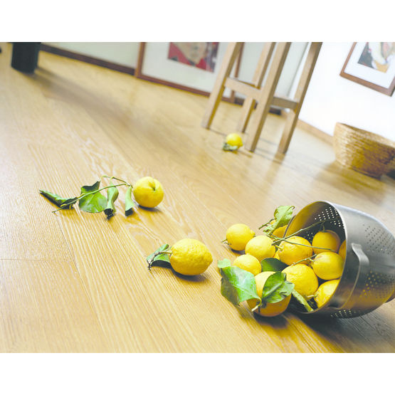 1. Esthétique Naturelle : Grâce au grain d'orge et à la finition satinée, ce parquet en chêne offre un aspect authentique et raffiné. Il est particulièrement adapté aux salles de séjour et bureaux qui nécessitent une ambiance accueillante.