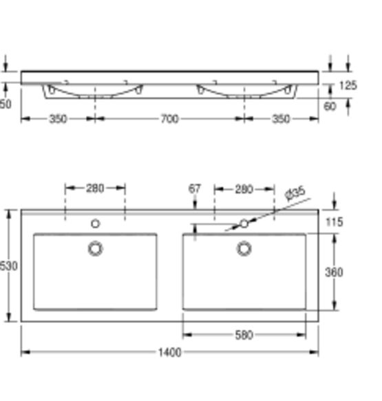 Dimensions 1400 x 125 x 530 mm (L x H x P)
