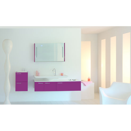 - Complétée par accessoires comme robinetterie, tablette céramique et miroir avec ou sans éclairage