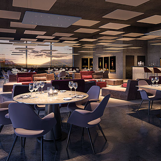 1. Double fonctionnalité : Le luminaire offre un éclairage performant tout en réduisant efficacement le bruit ambiant grâce à une technologie d'absorption acoustique de classe A.