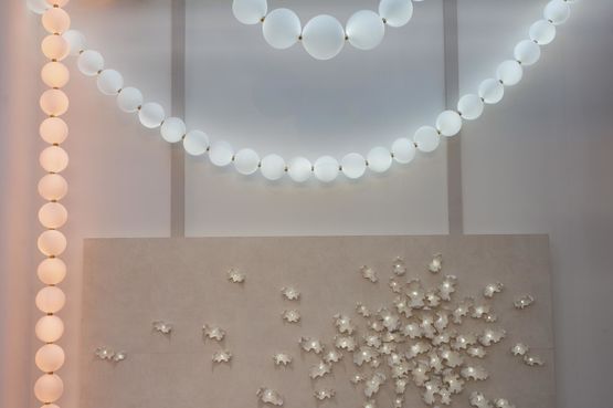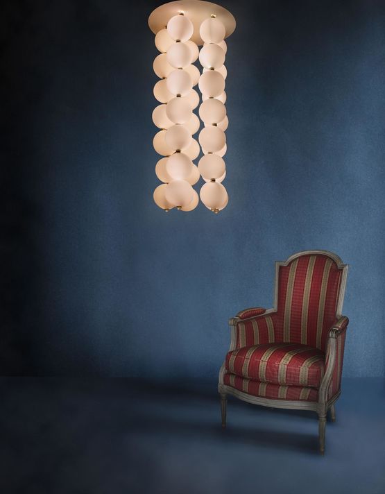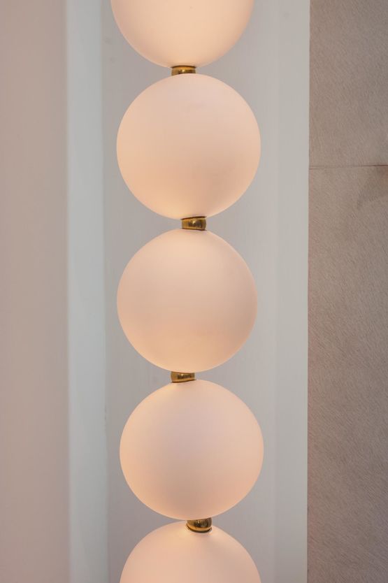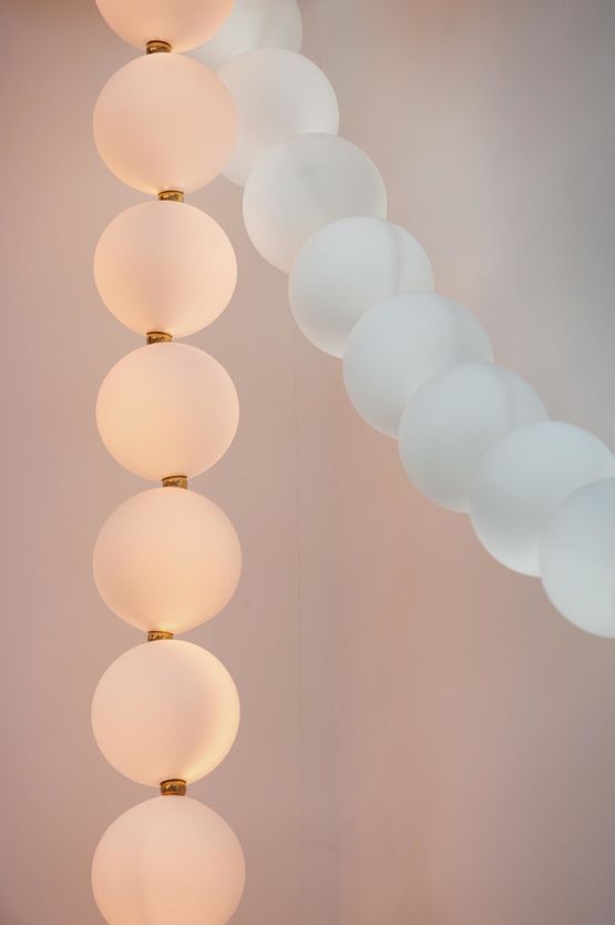 1. Design original et personnalisable : Le Lustre Collier - Perles se distingue par sa conception unique. Ses sphères en verre soufflé bouche sont disponibles en différents diamètres et textures, permettant de composer un luminaire qui répond précisément aux besoins esthétiques.
