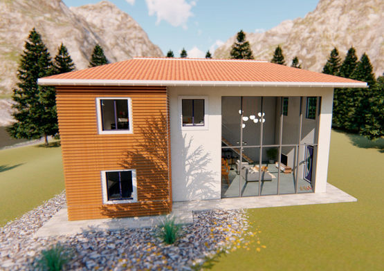 1. Espace et Confort : Avec un agencement optimisé sur deux niveaux, la Maison Millennials propose une grande pièce de vie lumineuse au rez-de-chaussée, complétée par un bureau et une salle d'eau. À l'étage, quatre chambres offrent un espace nuit confortable et séparé du reste de l’habitation.