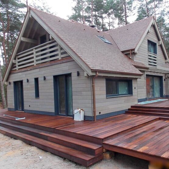 Garantissant une isolation thermique naturelle, ces maisons à ossature sont fabriquées en bois, un matériau durable, écologique et résistant aux intempéries et aux tremblements de terre. Le coût du chauffage et de climatisation est réduit grâce à ce matériau naturel. La régulation de l'humidité est assurée. Aussi, le bois apparent peut être recouvert de cire, vernis, laque, peinture, apprêt, etc.