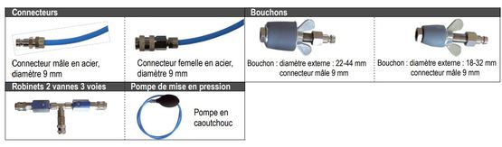 | Accessoires : | * Coque de protection élastomère avec piètement et aimant * Jonctions droites, en T ou Y pour tube Ø 5x8mm * Tube de Pitot de différentes longueurs et de Ø 3/6 ou 8mm, coudés ou droits |