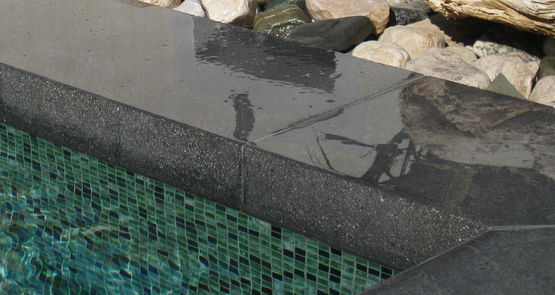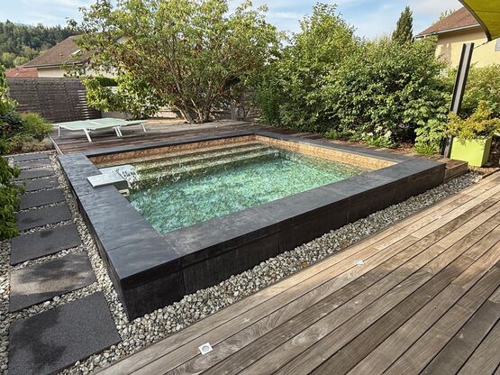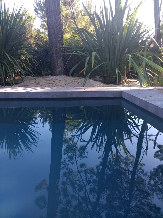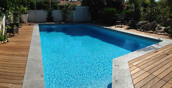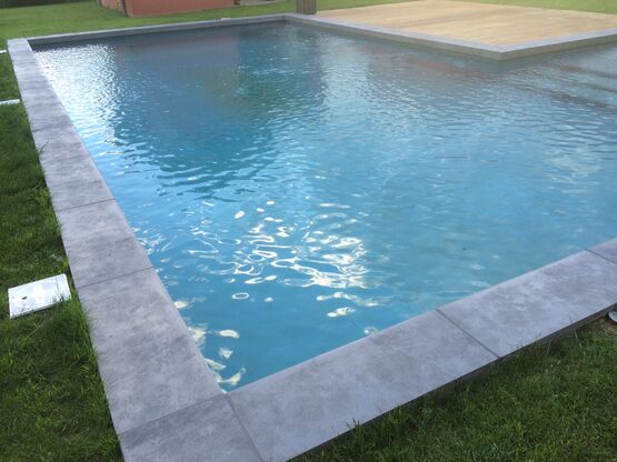 Margelles de piscine contemporaines en L avec retombée ou talon