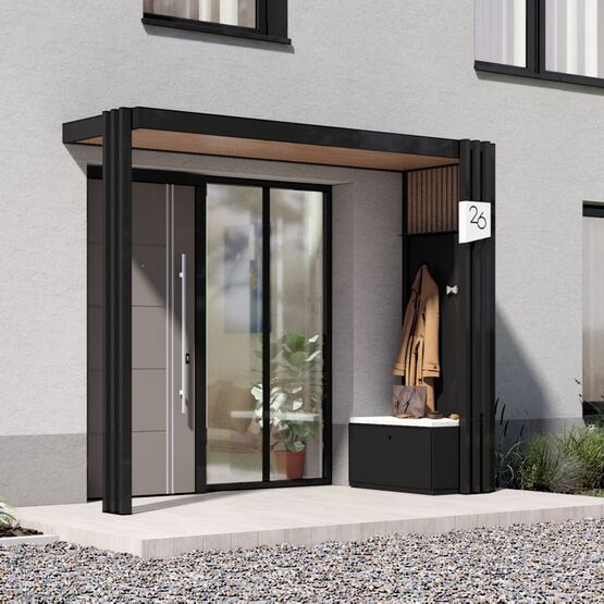 - Marquise idéale pour habiller l’angle à 90°de votre entrée
