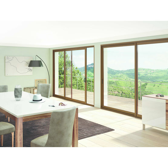 2. Luminosité accrue : Grâce à ses larges surfaces vitrées, cette baie coulissante maximise l'entrée de lumière naturelle, créant ainsi un espace de vie lumineux et agréable.