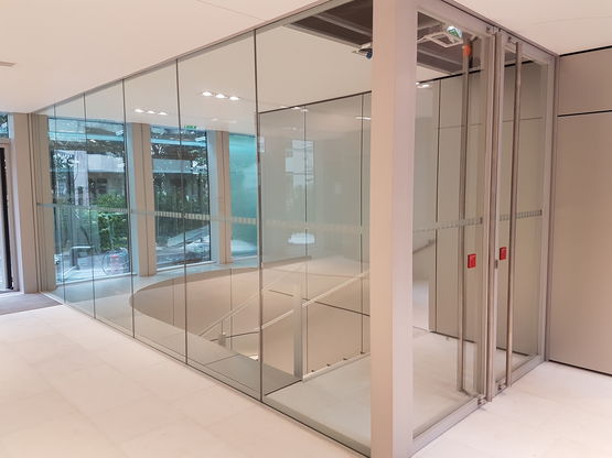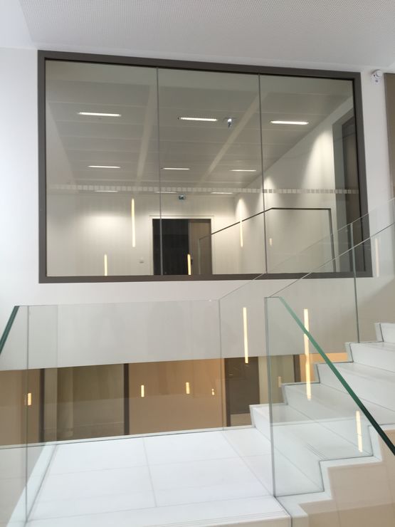Particulièrement pensées pour un encastrement total dans l’environnement ou également une réalisation des angles sans montants, ces cloisons bord à bord coupe-feu disposent d’une ossature en tube d’acier thermiquement isolé dont l’assemblage est réalisé par soudage et meulage.