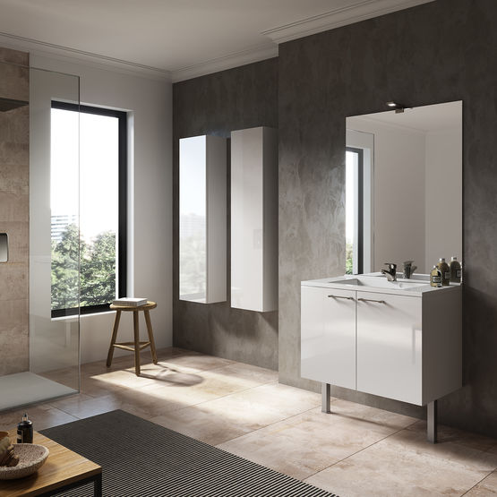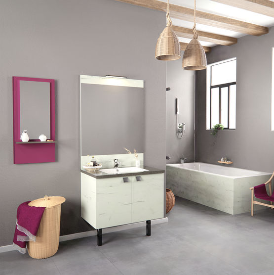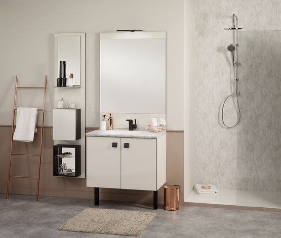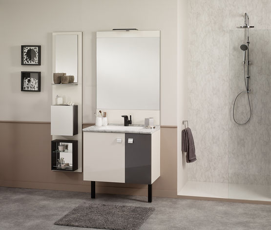 | Caractéristiques techniques : | Mobilier portes symétriques ou asymétriques Possibilité de sur-mesure avec fileur ou surfileur Monoplan avec vasque intégrée Fleur d'eau ou marbre minéral Meuble suspendu ou sur pieds (ou plinthe) Portes amorties à la fermeture |