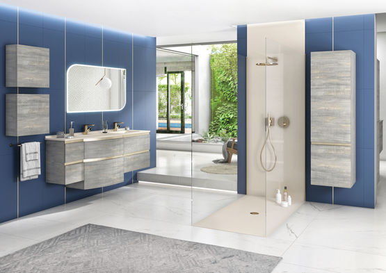 Pensé pour satisfaire les besoins de rangement, d'optimisation de l'espace et d'organisation de la salle de bains, cet ensemble de salle de bains vous séduira aussi par son design.