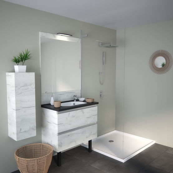 | Matériaux : | stratifié - plan Tempo ; coralyte - vasque Street |