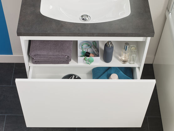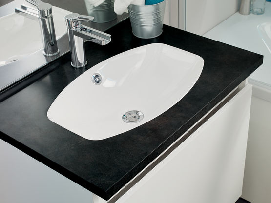 La vasque est constituée à base de coralyte, un matériau exclusivement développé par Chêne Vert. Validé par le FCBA et certifié CTB Composant, le coralyte résiste aux chocs thermiques et physiques, aux UV, aux tâches, aux rayures et à l’abrasion. De nombreuses options sont disponibles. Le meuble vasque Teo existe également avec portes.