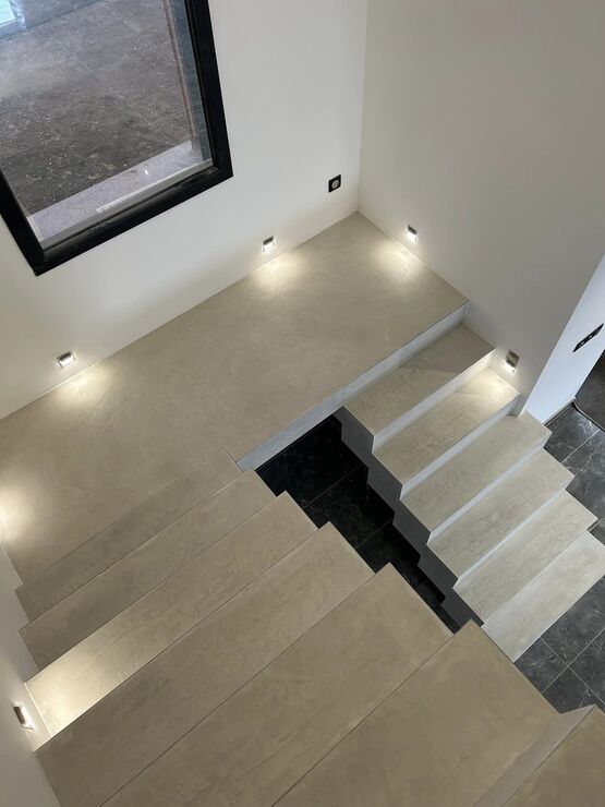 Il est très utile pour des pièces ou escaliers avec des formes spécifiques, il évitera les coupes qu'aurait à subir un carrelage.