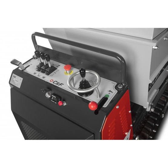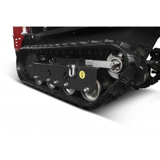 Cet équipement tout terrain se déplace aisément grâce à ses chenilles de 180 mm de large avec une vitesse de 5 Km/h.