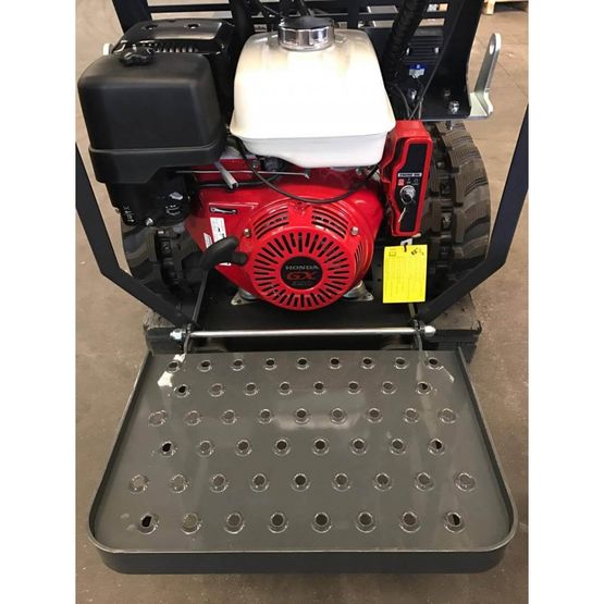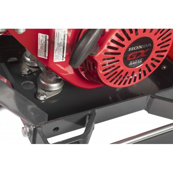 La machine est générée par un moteur essence HONDA. Elle se distingue par sa transmission hydrostatique, ses 3 pompes hydrauliques, ses galets oscillants, son arrêt d’urgence de série, son tableau de commande intuitif et sa commande par Joystick Servo-Electrique.
