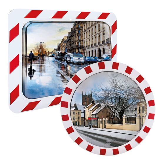 Protégé contre le vol par blocage, ce miroir inclinable est d'une hauteur de 500 mm, d'une profondeur de 84 mm et d'une largeur de 600 mm.