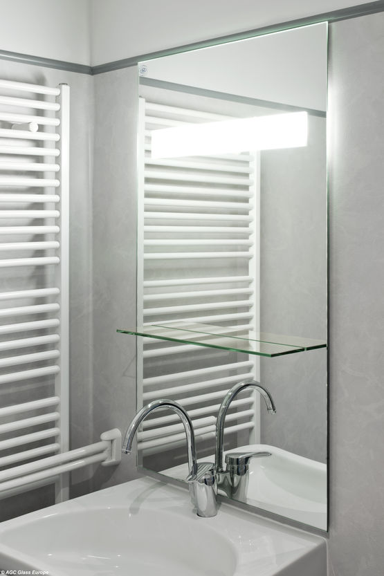 Ce miroir premium offre un niveau de réflexion exceptionnel qu’on perçoit sur ses couleurs claires ou colorées : clear, clearvision (miroir sur verre extra-clair), bronze, grey.
