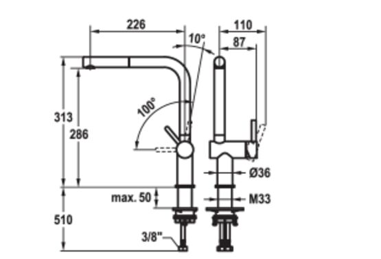 - Bec extractible extensible jusqu'à 600 mm