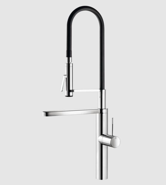 1. Confort optimal : La technologie brevetée HighFlex propose une grande flexibilité avec un tuyau supérieur extensible, très pratique pour toute tâche culinaire. Associée à une douchette rotative à 360°, elle facilite l'accès à toutes les zones de l'évier.