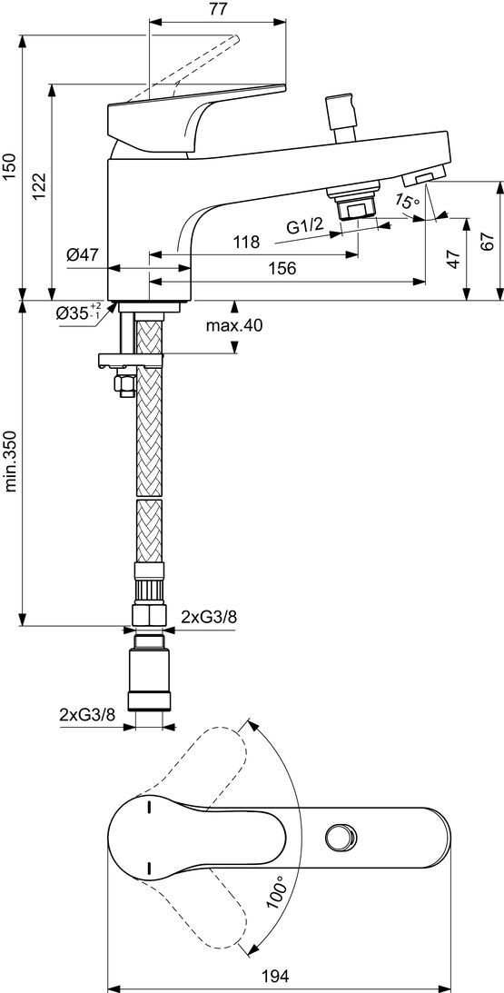 D’un poids de 1,89 kg, ce mitigeur mesure 150 x 40 x 194 mm (H x l x P), ce qui lui permet de s’intégrer facilement à tous les espaces.