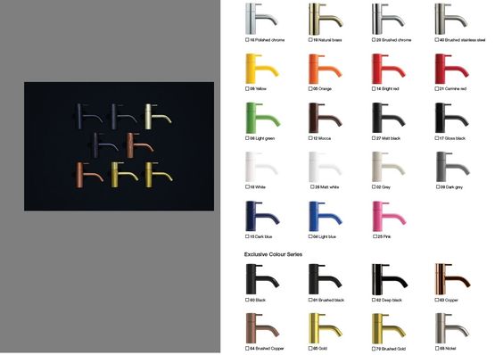 Cette robinetterie est composée des éléments suivants : une manette en métal, une cartouche de diamètre 35 mm, un bec fixe avec aérateur, un limiteur de débit par point dur, un limiteur de température réglable ainsi qu’un point de fixation.