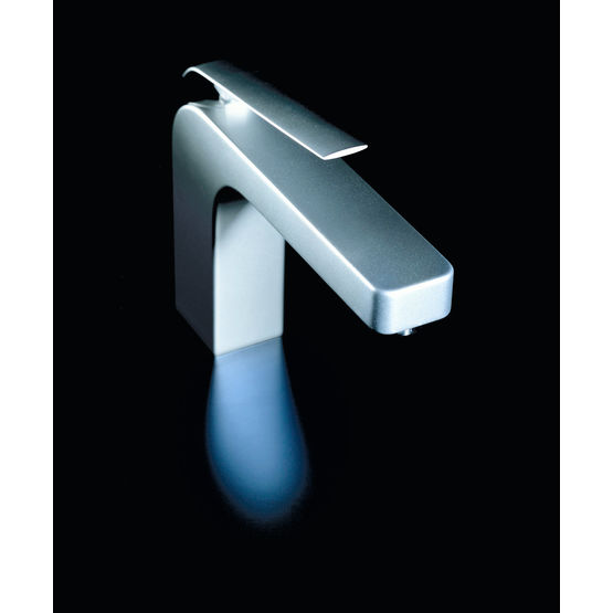 - Mitigeur monocommande aux lignes droites et angles arrondis pour lavabo.